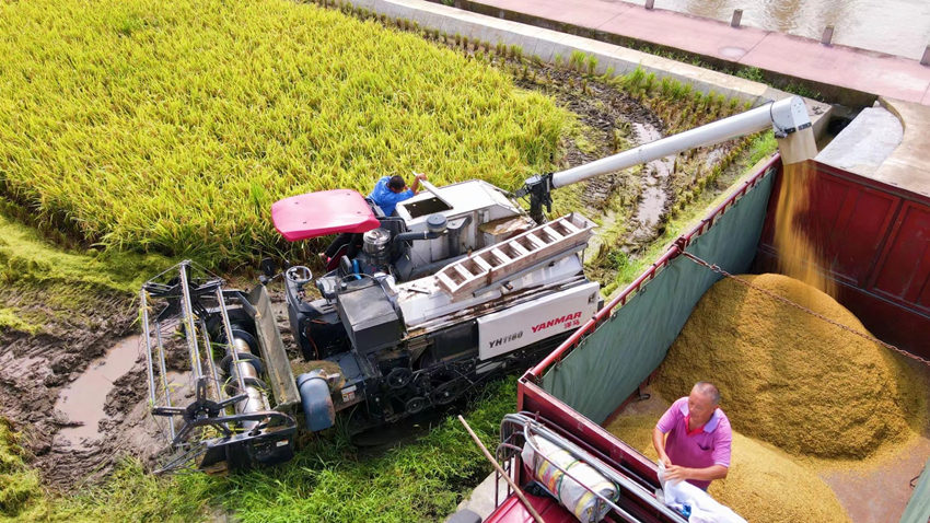 Mechanized facilities harvesting 84,000 hectares of rice in SW China's Sichuan (3)
