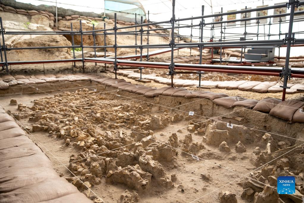 Photo taken on Aug. 31, 2021 shows a fossil site at West Coast Fossil Park in Langebaanweg, South Africa. The park has well-preserved fossil faunal remains that date to circa 5.2 million years ago. (Xinhua/Lyu Tianran)