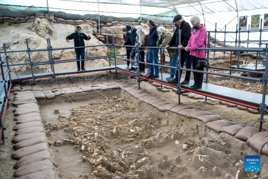 People visit a fossil site at West Coast Fossil Park in Langebaanweg, South Africa, on Aug. 31, 2021. The park has well-preserved fossil faunal remains that date to circa 5.2 million years ago. (Xinhua/Lyu Tianran)