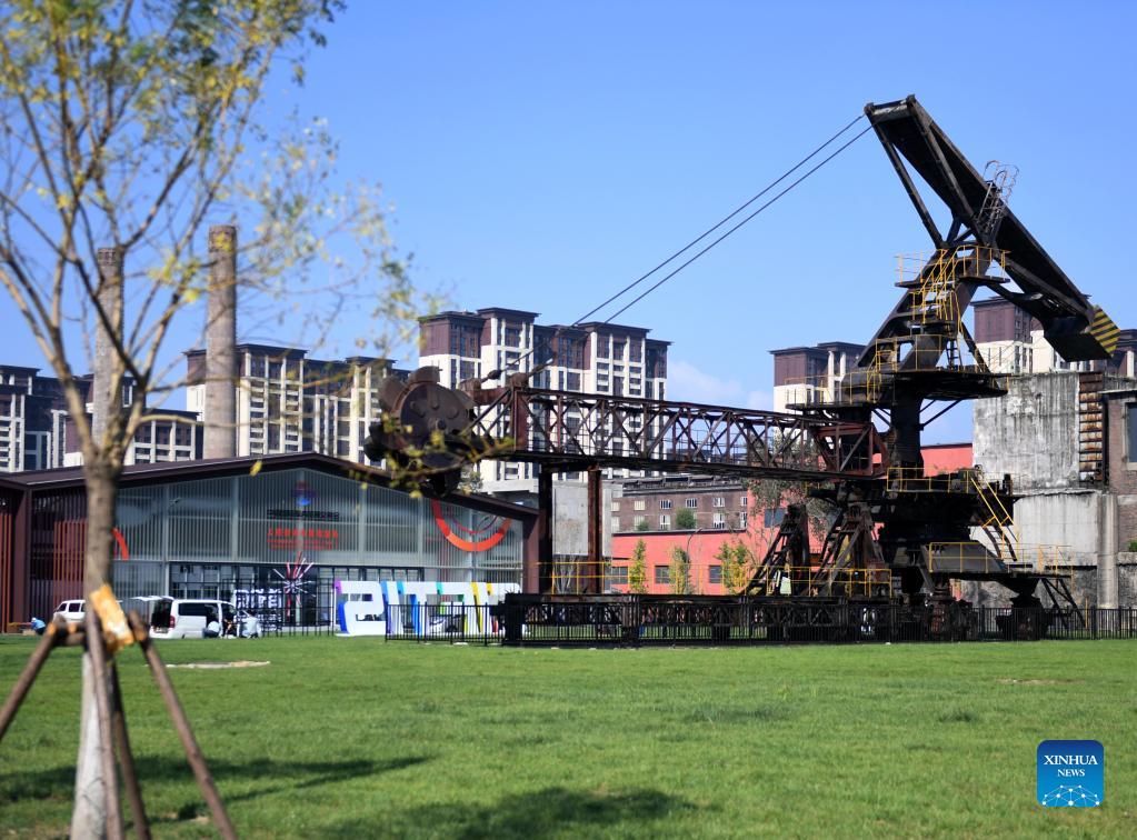 Photo taken on Aug. 31, 2021 shows the venue of the China International Fair for Trade in Services (CIFTIS) at Shougang Park, a steel mill-turned cultural and sports complex, in Beijing, capital of China. The CIFTIS, a major platform for trade in services in China, will take place from Sept. 2 to 7. With its traditional venue of the China National Convention Center hosting most of the CIFTIS events, eight thematic exhibitions and several forums and meetings of CIFTIS will take place for the first time in Shougang Park, its organizers said on Tuesday. (Xinhua/Zhang Chenlin)