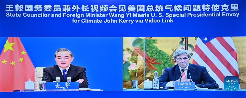 BEIJING, Sept. 1 (Xinhua) -- Chinese State Councilor and Foreign Minister Wang Yi on Wednesday met with the U.S. Special Presidential Envoy for Climate John Kerry via video link upon invitation, urging the U.S. side to work with China and take active steps to bring ties back on track.