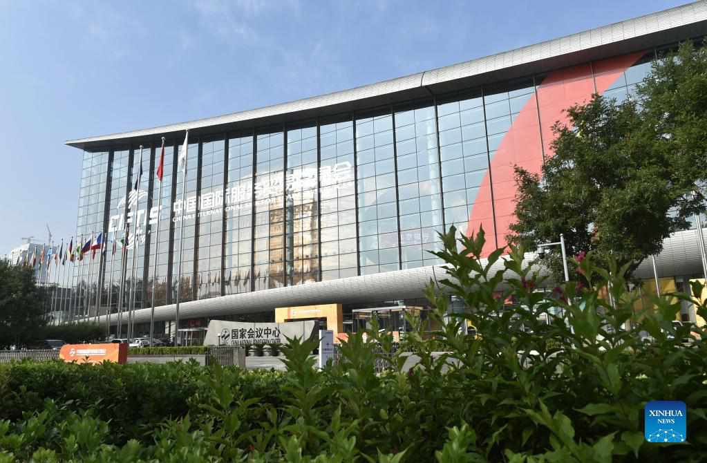 Photo taken on Sept. 1, 2021 shows an exterior view of the China National Convention Center, the main venue of the China International Fair for Trade in Services (CIFTIS), in Beijing, capital of China. The media center of the CIFTIS started trial operation on Wednesday. The CIFTIS is to be held from Sept. 2 to 7 this year. (Xinhua/Lu Peng)