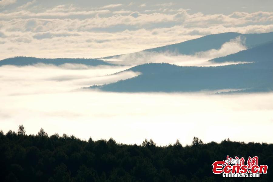 This undated photo shows a spectacular sea of clouds appear in the Yitulihe National Wetland Park in Inner Mongolia. The forest atmosphere and the sea of clouds turned the park into a fairyland. (Photo/Lyu Haojun)