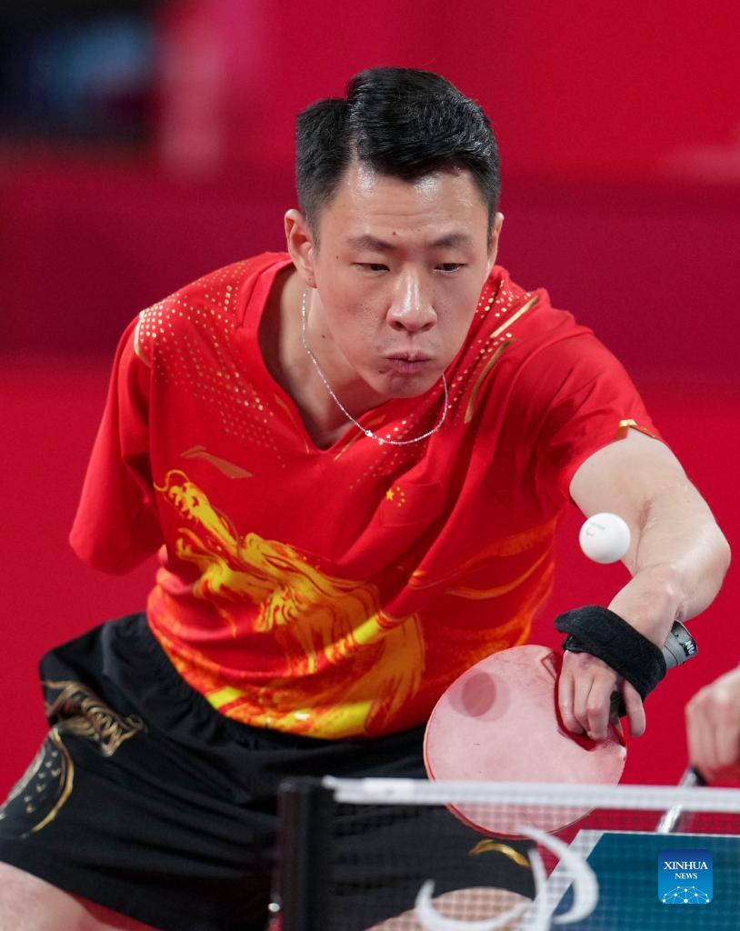 Liao Keli of China competes during the men's team classes 6-7 semifinal of table tennis event at the Tokyo 2020 Paralympic Games in Tokyo, Japan, Sept. 1, 2021. (Xinhua/Hu Huhu)