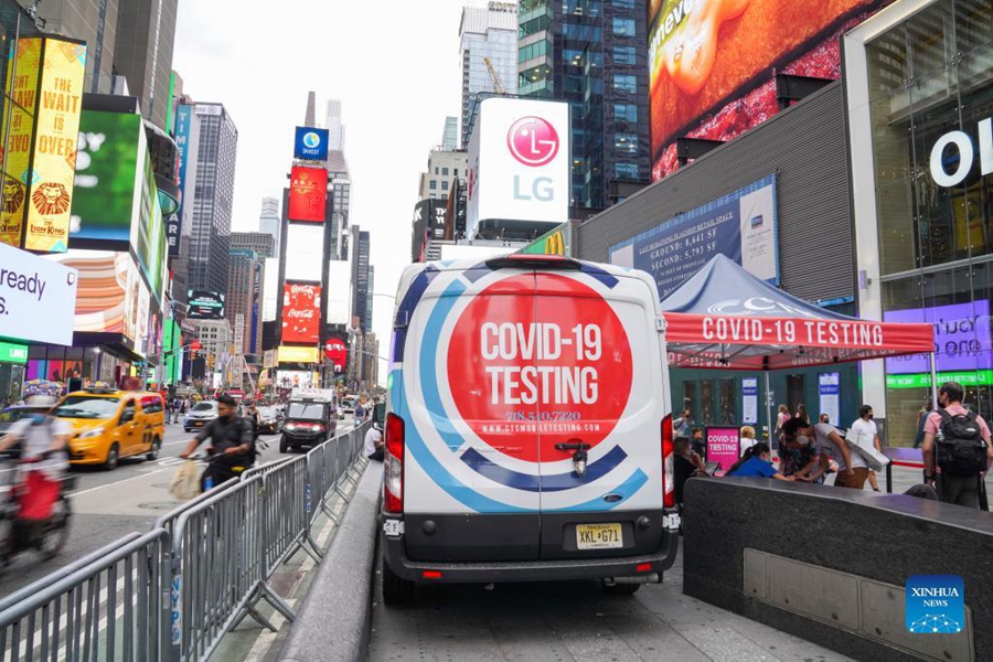 A mobile COVID-19 testing site is seen in New York, the United States, on Aug. 31, 2021. (Xinhua/Wang Ying)