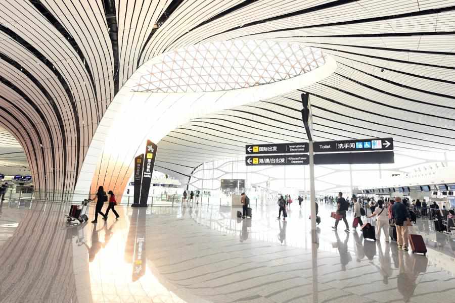Photo taken on Sept. 22, 2020 shows an interior view of the Beijing Daxing International Airport in Beijing, capital of China. (Xinhua/Ren Chao)