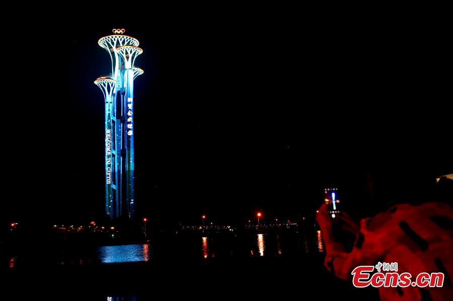 The Olympic Tower in Beijing lights up to celebrate opening of CIFTIS