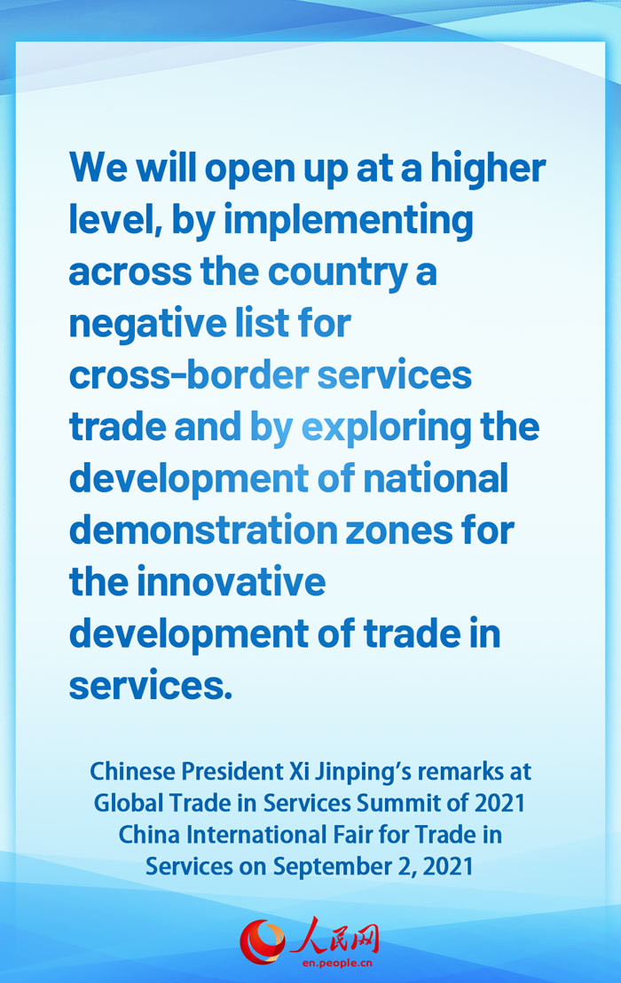 Highlights of Chinese President Xi Jinping's remarks at Global Trade in Services Summit of 2021 China International Fair for Trade in Services (2)