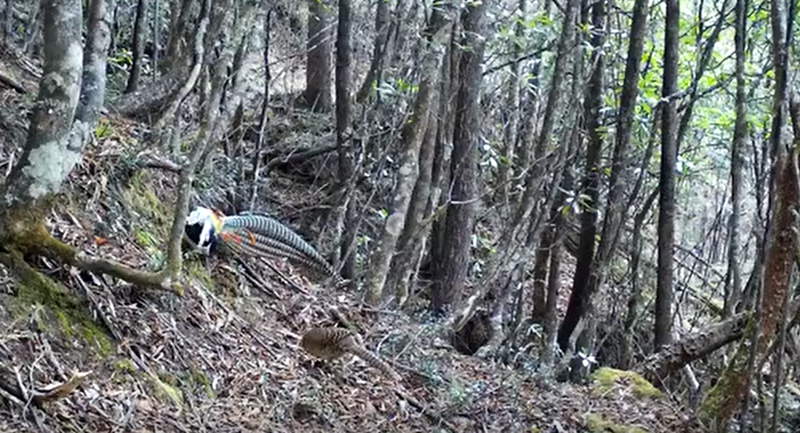 Infrared camera captures courtship ritual of rare bird in SW China’s Yunnan province
