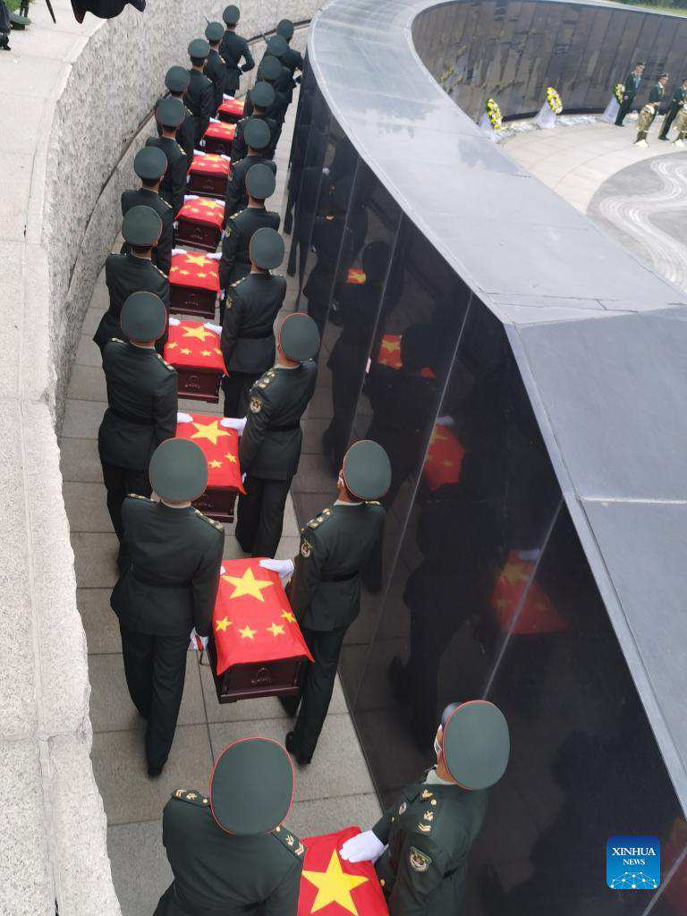 Burial ceremony for remains of 109 Chinese People's Volunteers martyrs held in Shenyang, NE China