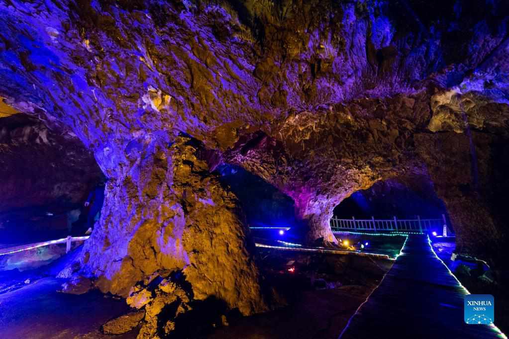 Photo taken on Sept. 2, 2021 shows a limestone cave in the Wudalianchi Geopark in Heihe, northeast China's Heilongjiang Province. The Wudalianchi Geopark is famed for its volcanoes and hot springs. It has 14 volcanoes and five major volcanic barrier lakes. (Xinhua/Xie Jianfei)