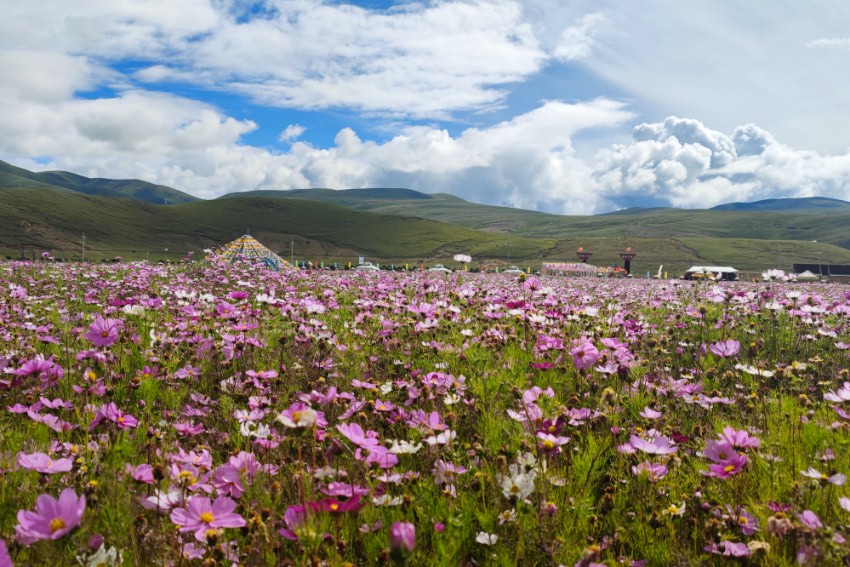 Embrace a sea of galsang flowers in Litang, SW China's Sichuan (3)