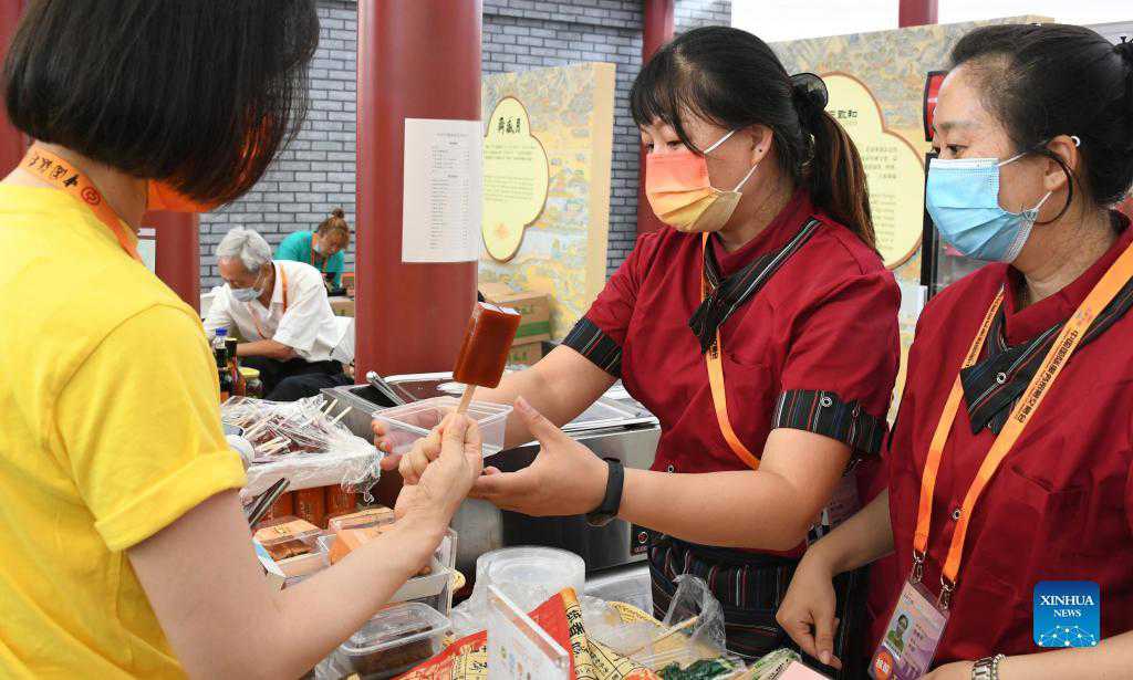A visitor purchases food during the 2021 China International Fair for Trade in Services (CIFTIS) at Shougang Park in Beijing, capital of China, Sept. 5, 2021. (Xinhua/Ren Chao)