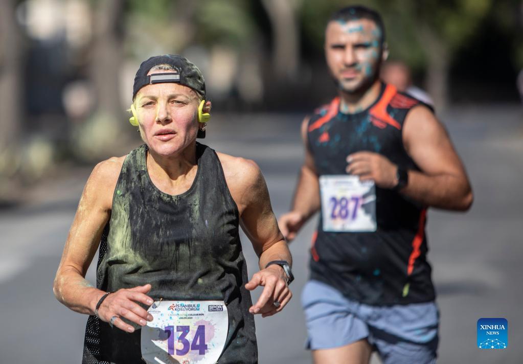Runners take part in the Color Run in Istanbul, Turkey, on Sept. 5, 2021. Color Run, one of the most colorful sports events in Turkey's biggest city Istanbul, was held on Sunday with the participation of 1,250 runners. (Photo by Osman Orsal/Xinhua)
