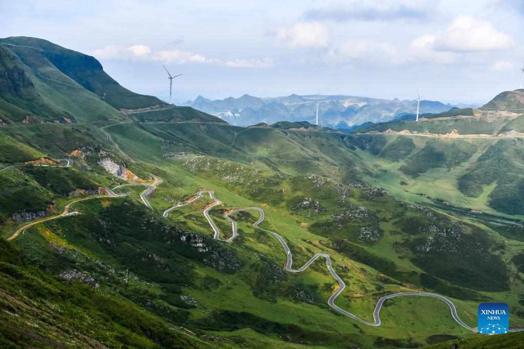 The landscape of a scenic spot is pictured in Hezhang County, southwest China's Guizhou Province, Sept. 3, 2021. Hezhang County, featuring beautiful natural scenery and distinctive culture, has ramped up efforts in improving tourism facilities and boosting tourism industry in recent years. Tourism development of the county has given impetus to its rural revitalization. Statistics show that the county has received 4.34 million visitor trips from January to August this year. (Xinhua/Yang Wenbin)