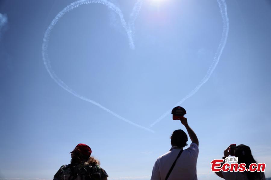 The Canadian Forces Snowbirds perform during the 2021 Canadian International Air Show in Toronto, Canada, on Sept. 4, 2021. (Photo/China News Service/Yu Ruidong)