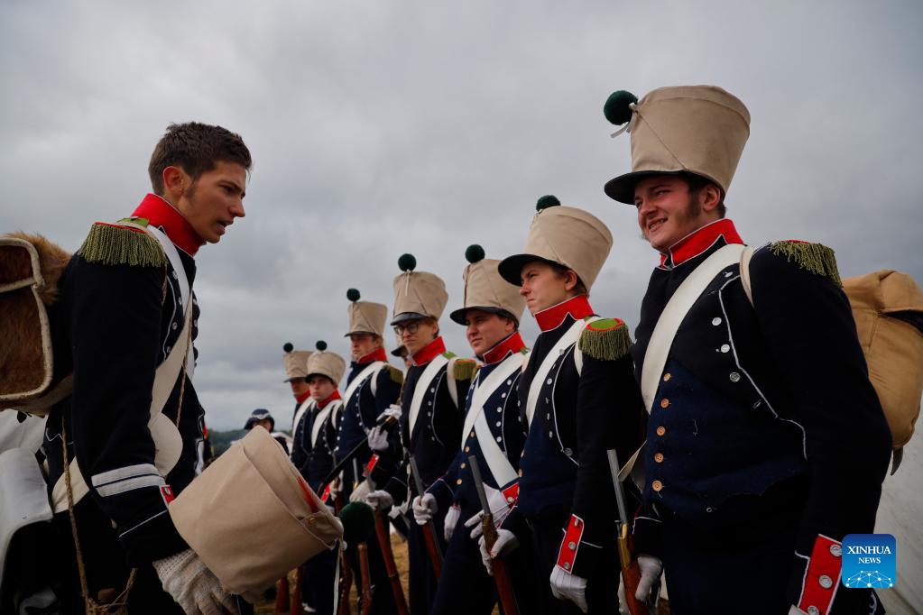 Participants take part in the reenactment of the 1812 Battle of Borodino between Russia and the invading French army near the Borodino village, outside Moscow, Russia, on Sept. 5, 2021. (Photo by Alexander Zemlianichenko Jr/Xinhua)