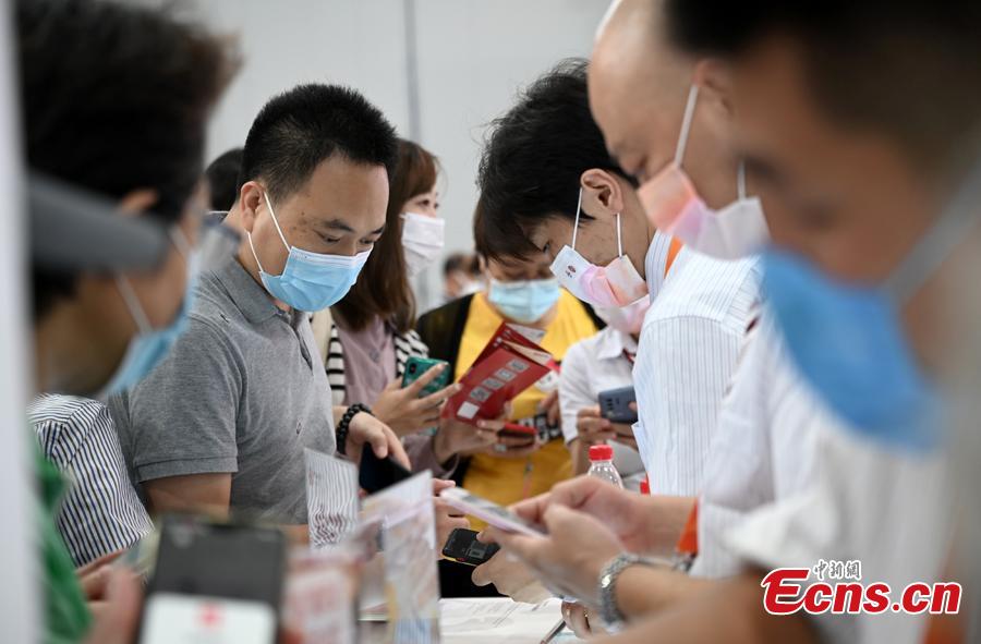 People experience digital RMB at the 2021 China International Fair for Trade in Services (CIFTIS) held in Beijing, Sept. 5, 2021. The CIFTIS opened both offline and online on Thursday and will close on Tuesday in Beijing. (Photo: China News Service/Zhang Xinglong)