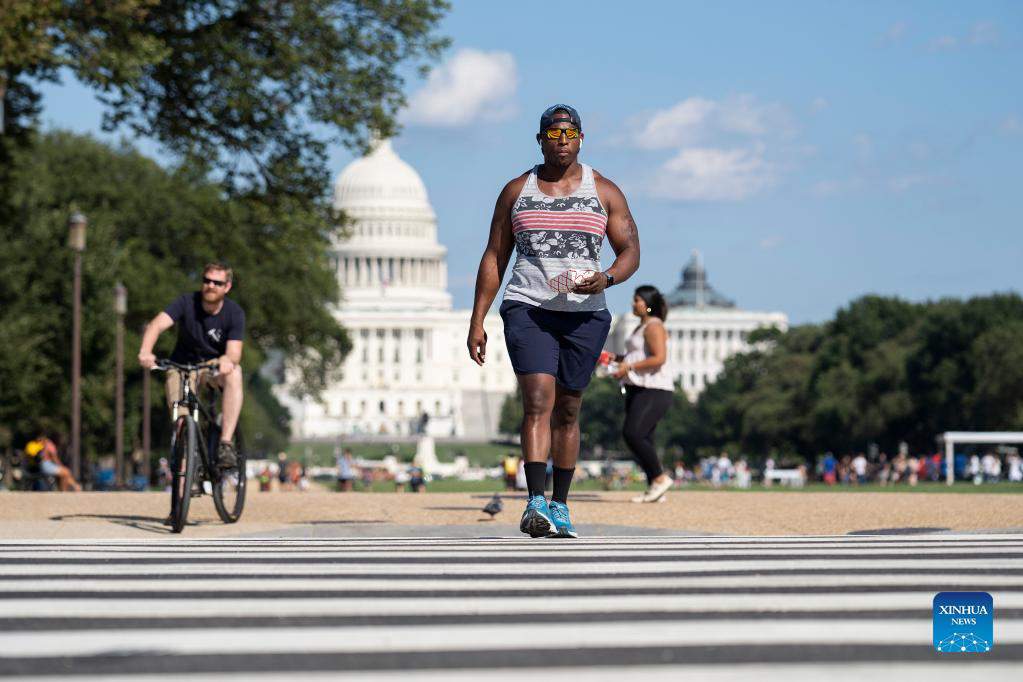 People are seen on the National Mall in Washington, D.C., the United States, on Sept. 6, 2021. The total number of COVID-19 cases in the United States topped 40 million on Monday, according to data from the Johns Hopkins University. (Xinhua/Liu Jie)
