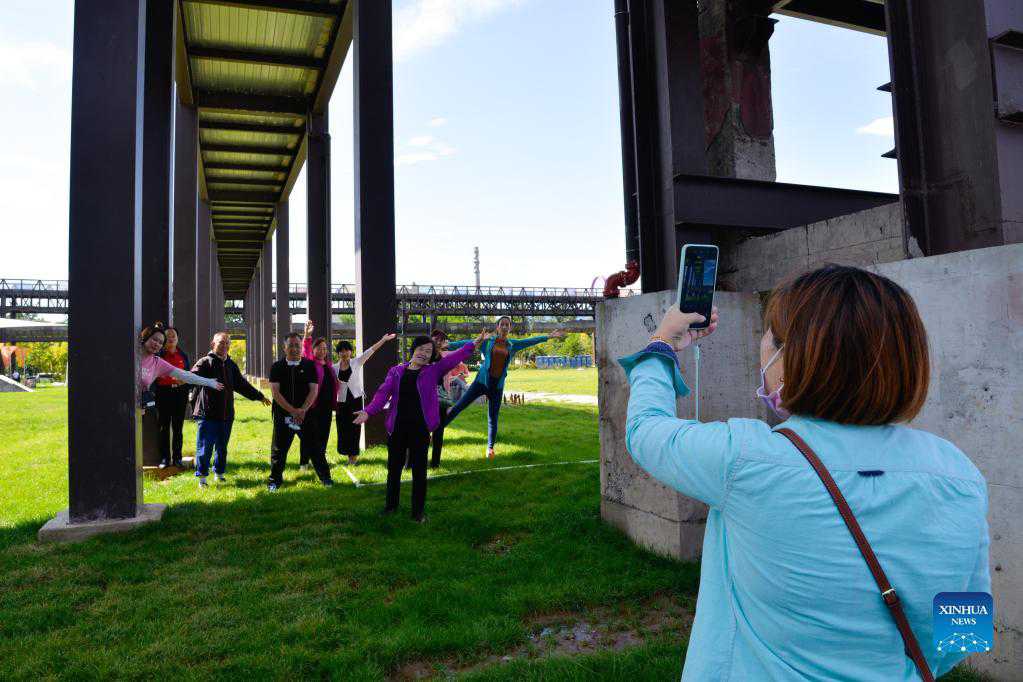People take photos during the 2021 China International Fair for Trade in Services (CIFTIS) at Shougang Park in Beijing, capital of China, Sept. 6, 2021. (Xinhua/Xu Qin)