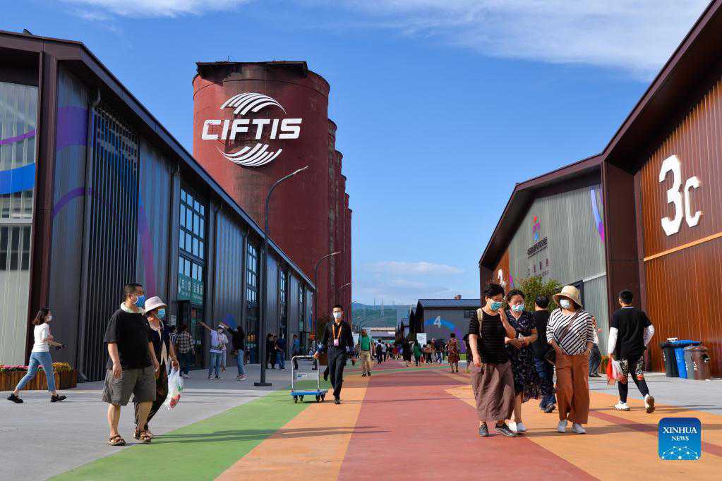 People visit the 2021 China International Fair for Trade in Services (CIFTIS) at Shougang Park in Beijing, capital of China, Sept. 6, 2021. (Xinhua/Xu Qin)