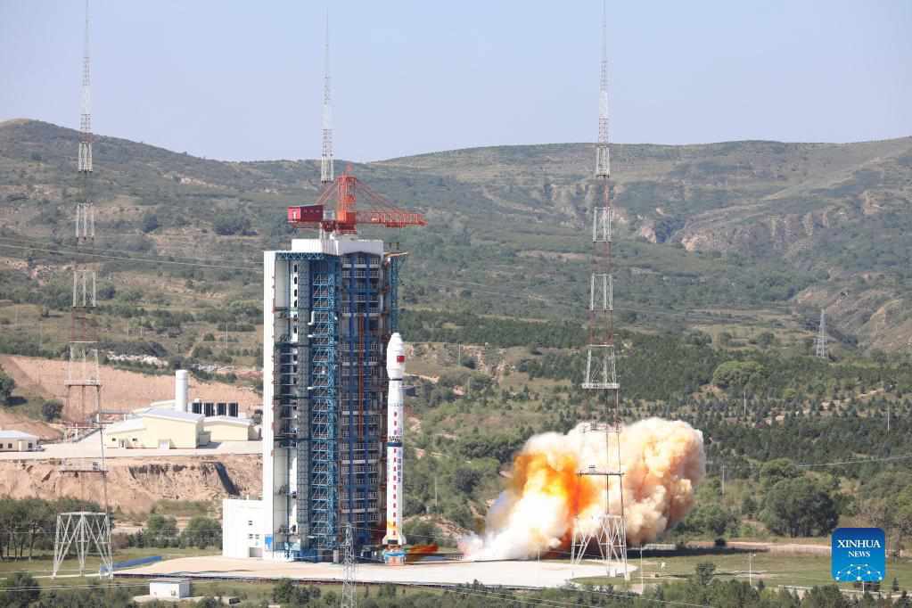 A Long March-4C rocket carrying the satellite Gaofen-5 02 blasts off from the Taiyuan Satellite Launch Center in north China's Shanxi Province, Sept. 7, 2021. China sent the new Earth observation satellite into space from the Taiyuan Satellite Launch Center at 11:01 a.m. Tuesday (Beijing Time). (Photo by Zheng Bin/Xinhua)
