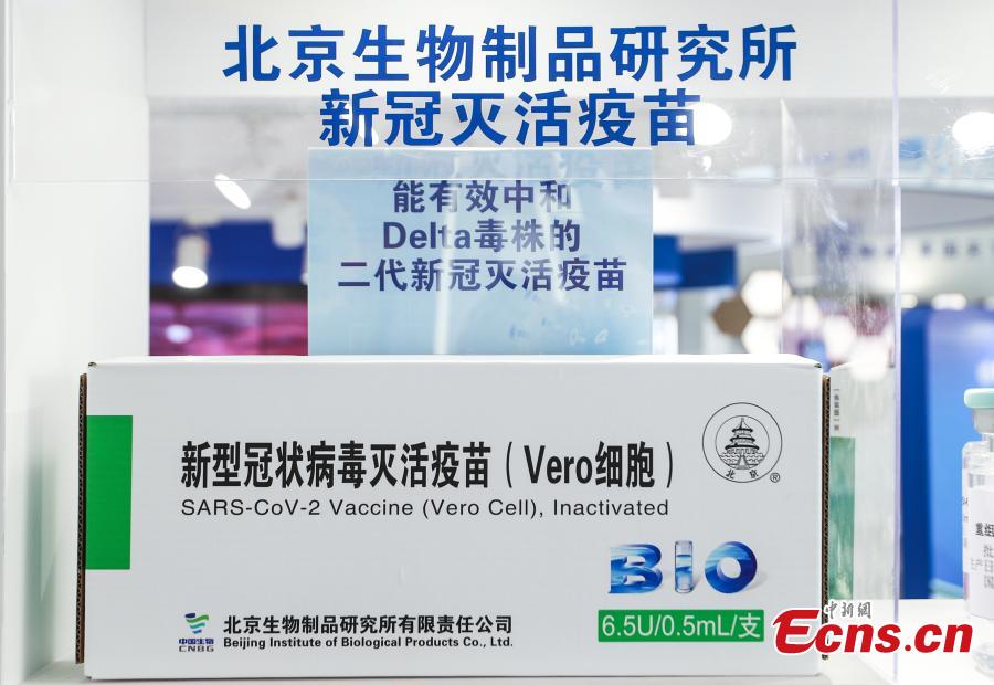 Photo shows a second-generation vaccine against coronavirus variants developed by China's Sinopharm at 2021 China International Fair for Trade in Services (CIFTIS), Beijing, Sept. 6, 2021. (Photo: China News Service/Jia Tianyong)