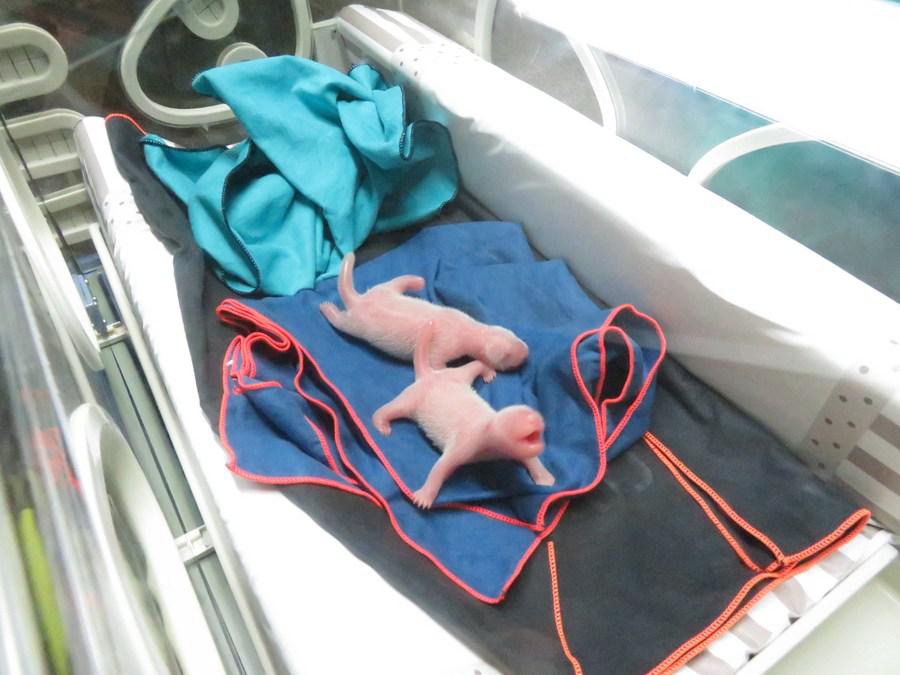 Photo taken on Sept. 6, 2021 shows the newborn panda cubs in Zoo Aquarium in Madrid, Spain. (Zoo Aquarium de Madrid/handout via Xinhua)