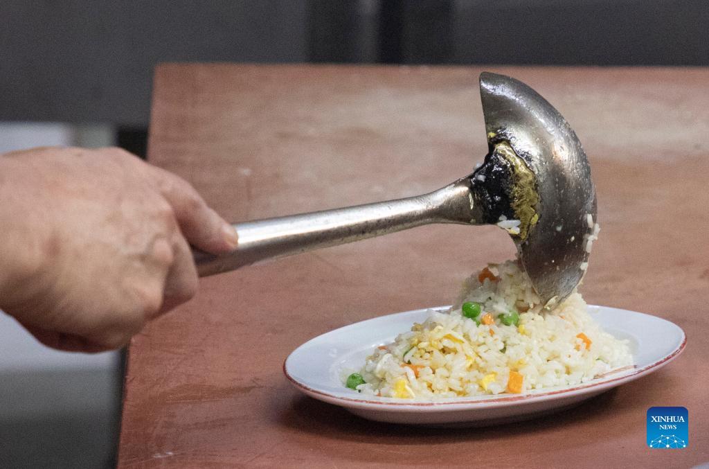 Chinese chef Shen Hu dishes up a meal at a Chinese restaurant in Istanbul, Turkey, on Sept. 2, 2021. (Photo by Osman Orsal/Xinhua)