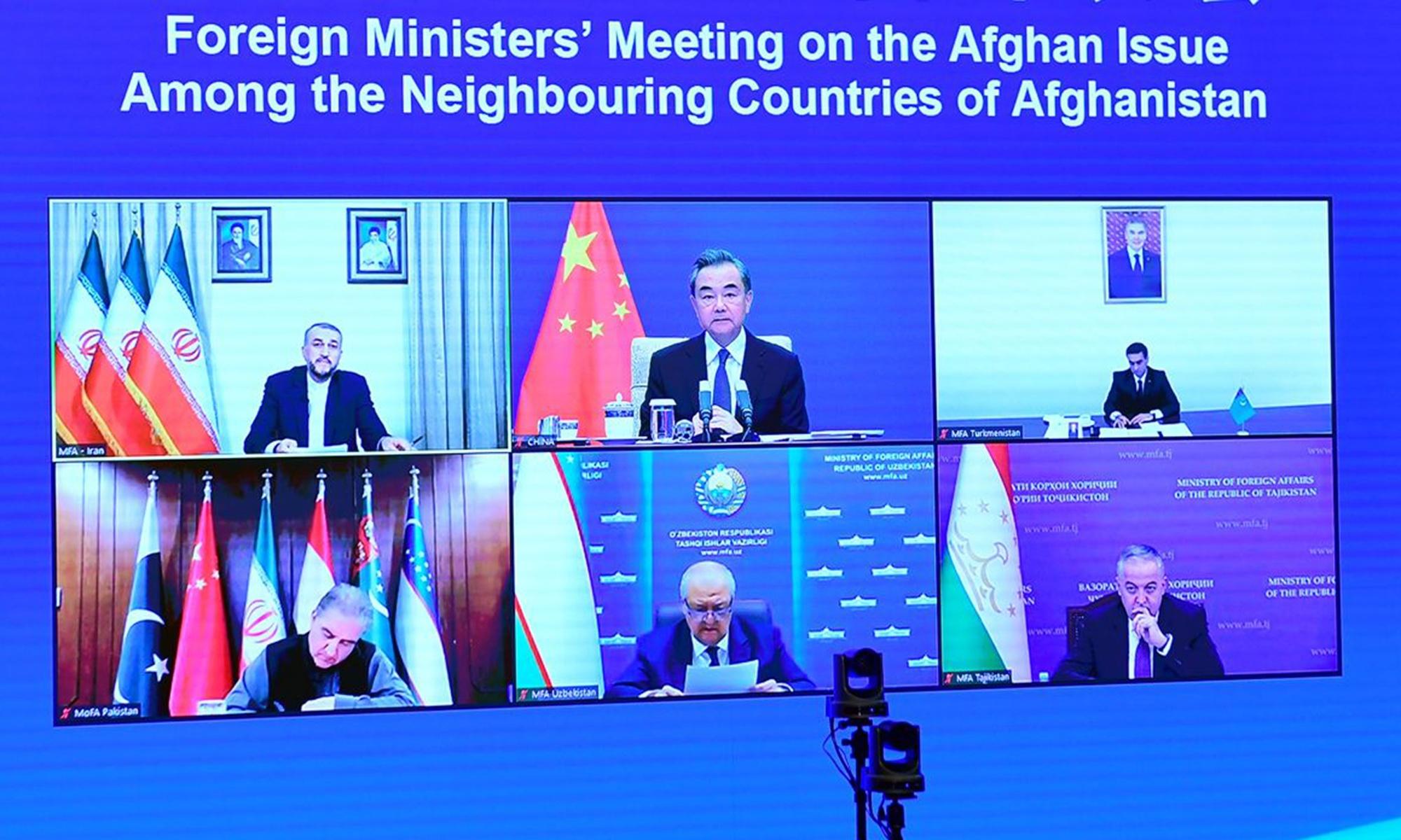 Wang said to the foreign ministers from Pakistan, Iran, Tajikistan, Uzbekistan and Turkmenistan that all Afghanistan's neighbors can cooperate in fields including helping Afghanistan to strengthen COVID-19 epidemic prevention, keeping border ports open, strengthening management and control on refugees, providing humanitarian aid, deepening counterterrorism cooperation and conducting anti-drug operations.