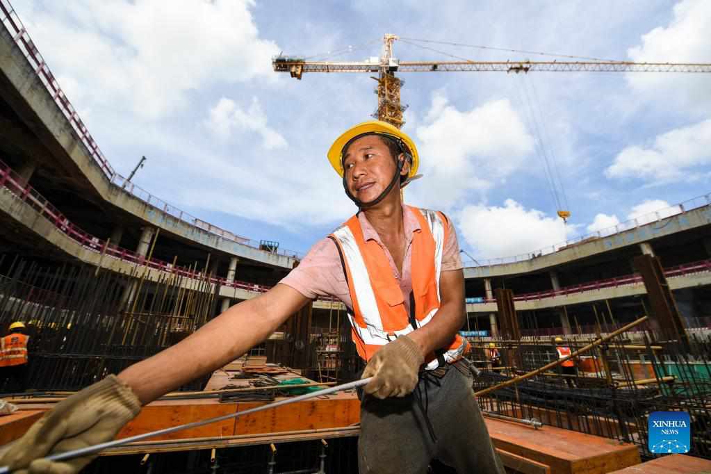 A worker operates at the construction site for a comprehensive traffic hub in Qianhai, Shenzhen City, south China's Guangdong Province, on Sept. 8, 2021. China's central authorities have issued a new plan for further developing a cooperation zone for the southern metropolis of Shenzhen and the Hong Kong Special Administrative Region (HKSAR). According to the plan, the reform and opening up of the Qianhai Shenzhen-Hong Kong Modern Service Industry Cooperation Zone will be comprehensively deepened. The plan, issued by the Communist Party of China Central Committee and the State Council, was made public on Monday. The general plan to establish the cooperation zone was approved by the State Council in 2010. (Xinhua/Mao Siqian)