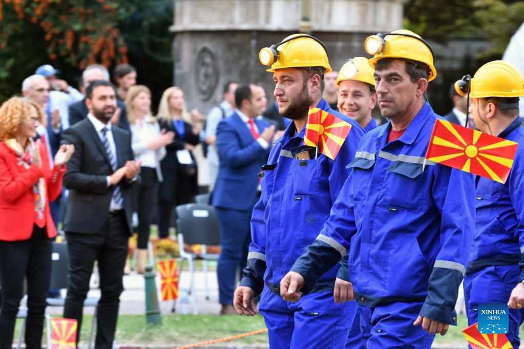 Miners participate in a parade marking the 30th anniversary of the independence of North Macedonia in Skopje, North Macedonia, Sept. 8, 2021. (Photo by Tomislav Georgiev/Xinhua)