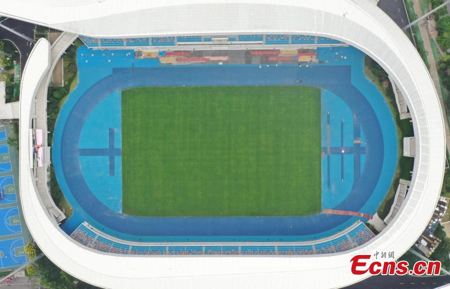 Aerial photo shows Linpin Sports Center stadium, which will host football group matches at the 2022 Asian Games in Hangzhou, capital of east China's Zhejiang Province. (Photo: China News Service/Wang Gang)