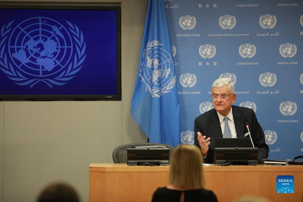 President of the 75th session of the United Nations General Assembly (UNGA) Volkan Bozkir speaks during a press conference at the UN headquarters in New York, on Sept. 9, 2021. Volkan Bozkir said on Thursday that 83 heads of state are expected to attend the 76th session of the UN General Assembly (UNGA 76), which opens on Sept. 14. (Xinhua/Xie E)