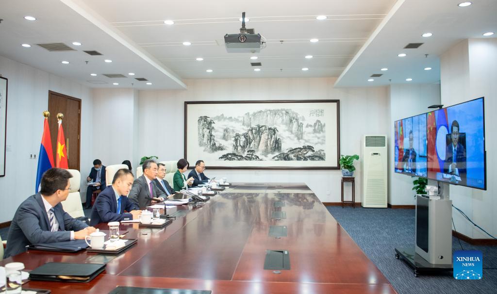 BEIJING, Sept. 9 (Xinhua) -- Chinese State Councilor and Foreign Minister Wang Yi on Thursday met with Lao Foreign Minister Saleumxay Kommasith via video link.