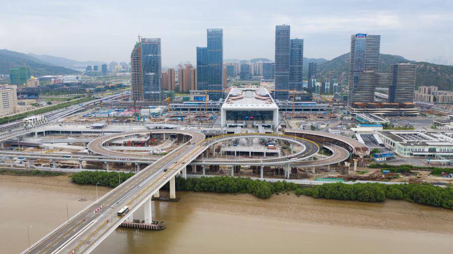An aerial photo taken on Aug. 18, 2020, shows the Hengqin Port in Zhuhai, south China's Guangdong Province. (Xinhua/Cheong Kam Ka)