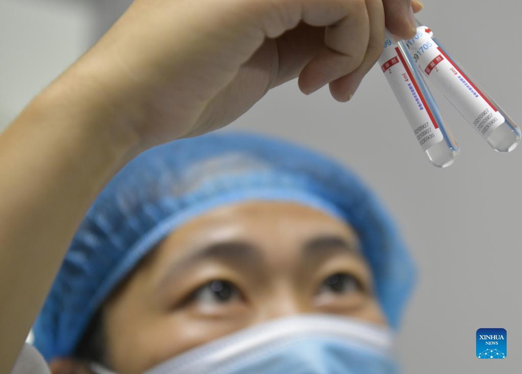 A technician works at the laboratory of a pharmaceutical packaging material enterprise in Cangxian County, north China's Hebei Province, Sept. 9, 2021. There are more than 1,000 pharmaceutical packaging materials manufacturers in Cangxian County. (Xinhua/Luo Xuefeng)