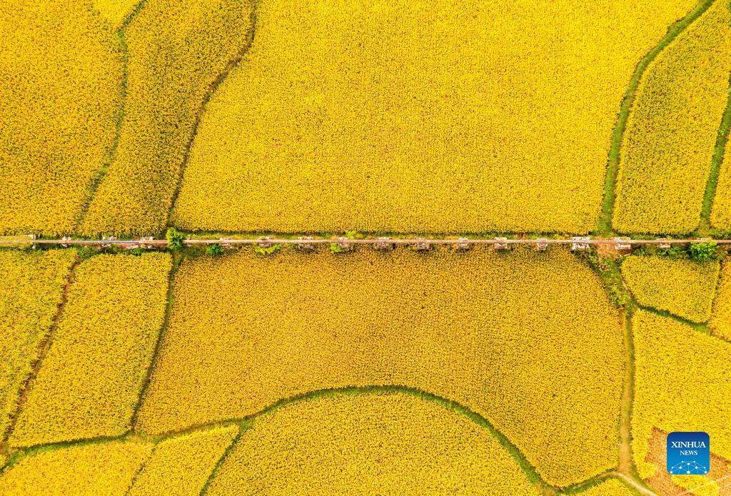 Aerial photo taken on Sept. 13, 2021 shows paddy fields in Qianxi City, southwest China's Guizhou Province. (Photo by Fan Hui/Xinhua)