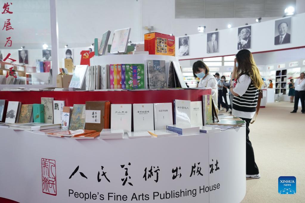 People visit the 28th Beijing International Book Fair in Beijing, capital of China, Sept. 14, 2021. The book fair kicked off Tuesday and is scheduled until Sept. 18. It has attracted roughly 2,200 exhibitors from 105 countries and regions, including 57 along the Belt and Road, said the organizer, adding that over 300,000 books are on display. (Xinhua/Ju Huanzong)