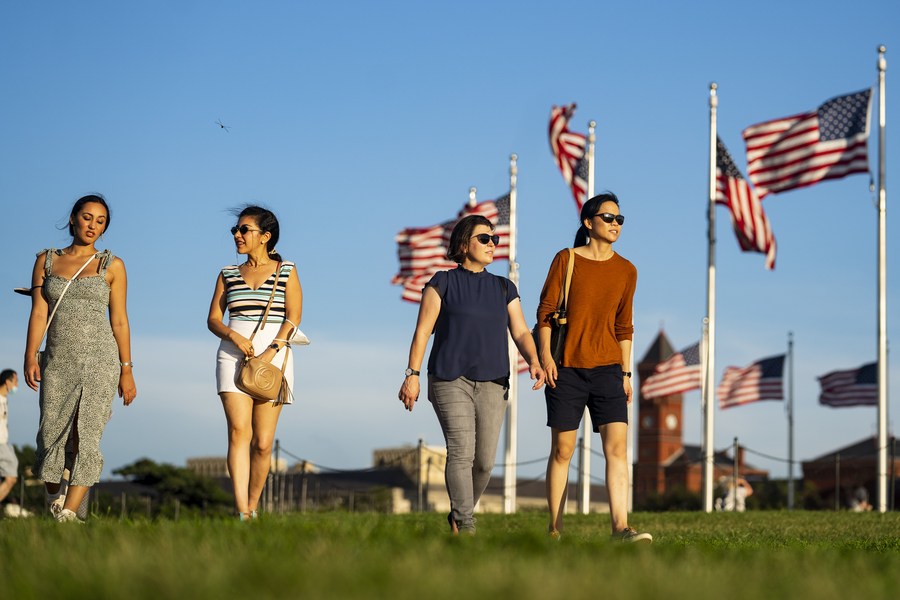 Tourists visit the National Mall in Washington, D.C., the United States, on Aug. 18, 2021. (Xinhua/Liu Jie)