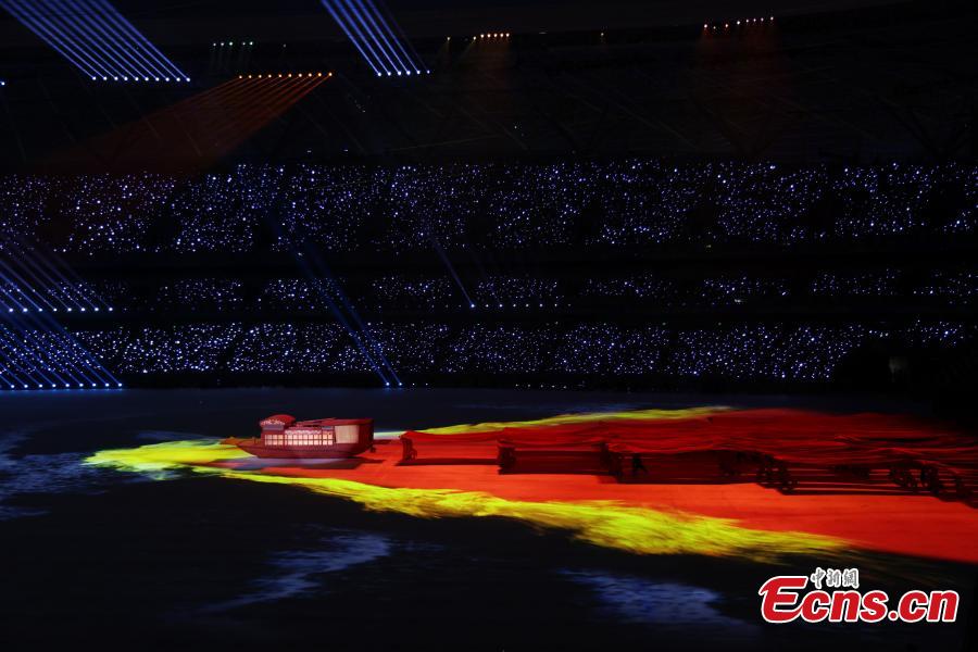 Photo taken on September 15, 2021 shows the performance during the opening ceremony of China's 14th National Games in Xi'an, Shaanxi Province. (Photo: China News Service/Sheng Jiapeng)
