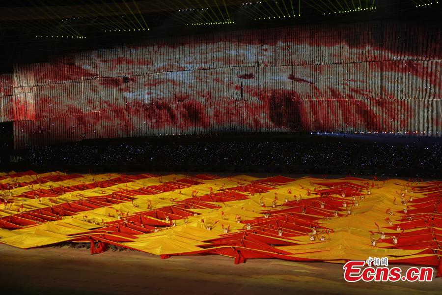Photo taken on September 15, 2021 shows the performance during the opening ceremony of China's 14th National Games in Xi'an, Shaanxi Province. (Photo: China News Service/Sheng Jiapeng)