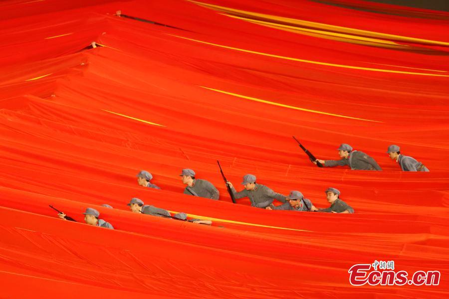 Photo taken on September 15, 2021 shows the performance during the opening ceremony of China's 14th National Games in Xi'an, Shaanxi Province. (Photo: China News Service/Sheng Jiapeng)