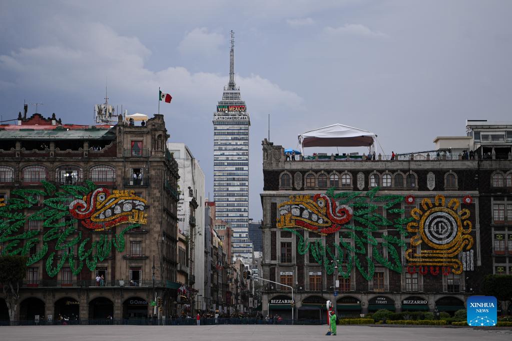 Photo taken on Sept. 15, 2021 shows a view of the Zocalo Square before the upcoming celebrations of the Mexican Independence Day, in Mexico City, capital of Mexico. (Xinhua/Xin Yuewei)