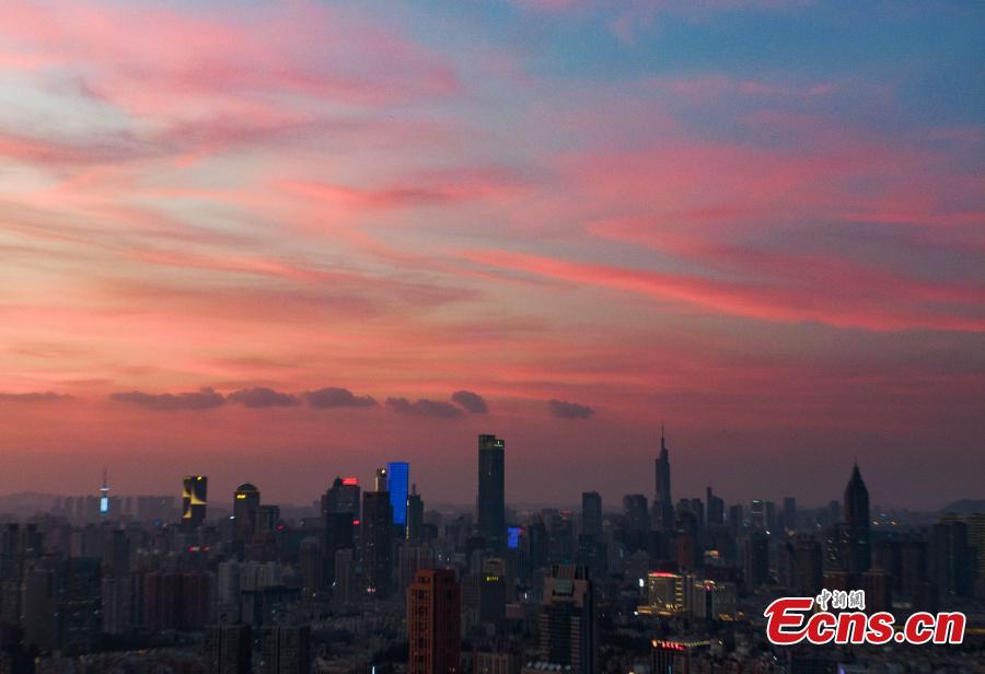 Stunning sunset glow turns the sky into a shade of pink and orange in Nanjing, capital of east China's Jiangsu Province, September 15, 2021. (Photo: China News Service/Yang Bo)