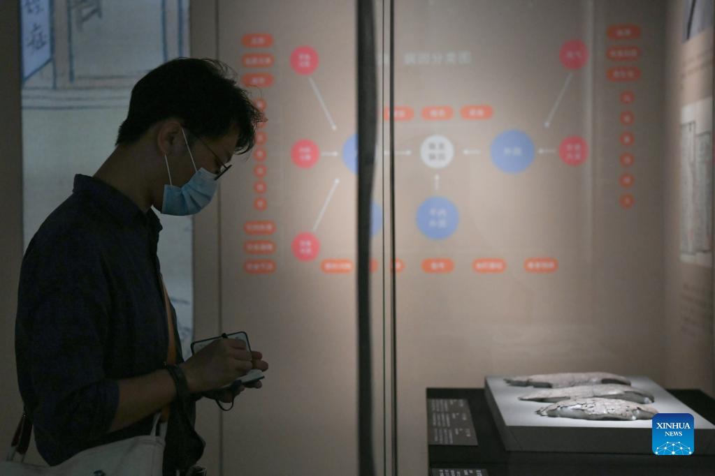 A man visits an exhibition featuring traditional Chinese medicine relics in Chengdu Museum in Chengdu, capital of southwest China's Sichuan Province, Sept. 17, 2021. The exhibition, which kicked off here on Friday, showcases more than 300 traditional Chinese medicine-related relics. (Xinhua/Xu Bingjie)