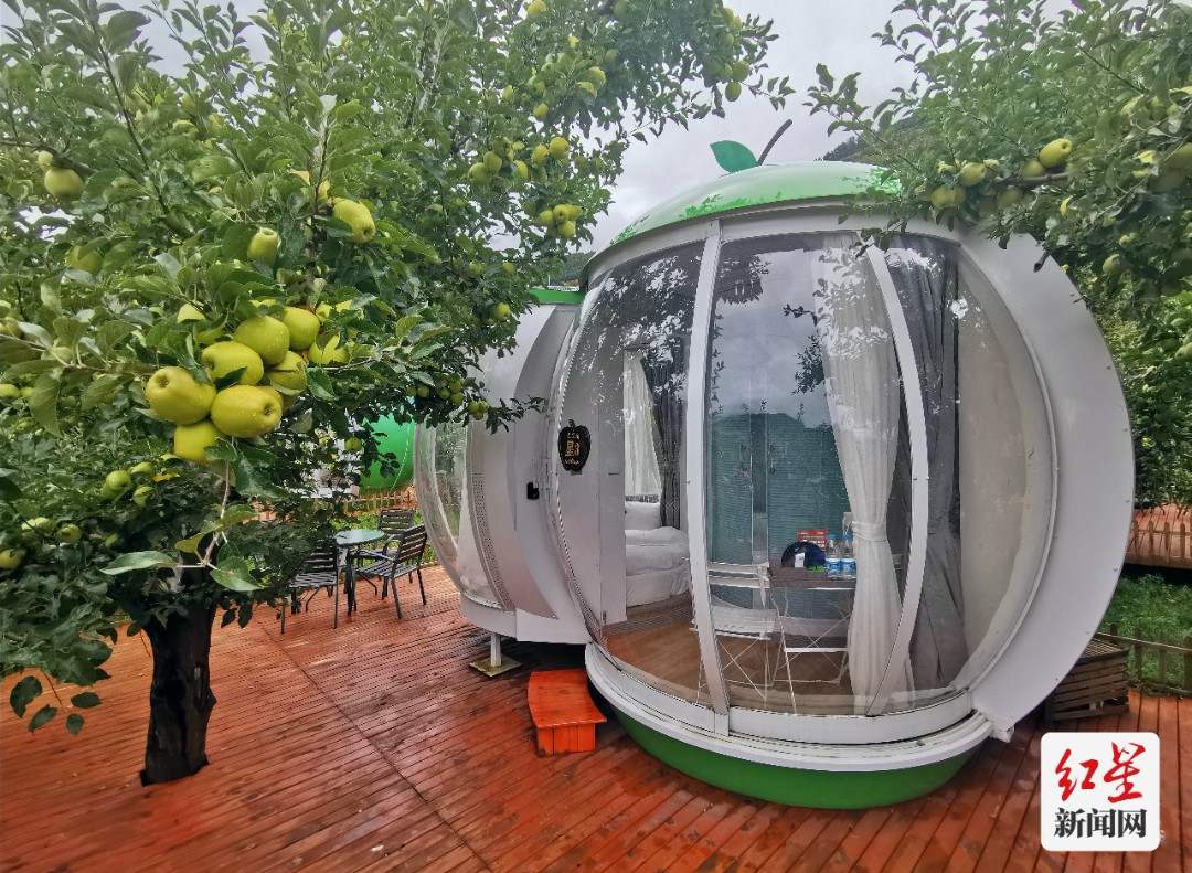 Photo shows an apple-shaped homestay in an apple orchard in Mulan village, Xiaojin county, Aba Tibetan and Qiang Autonomous Prefecture in southwest China's Sichuan province. (Photo/news.chengdu.cn)