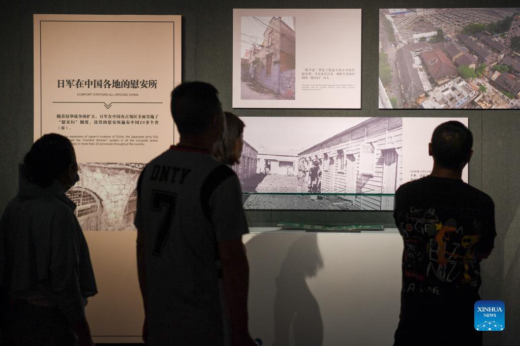 People visit the exhibition of the Crimes of Japanese "Comfort Women" System at the Memorial Hall of the Victims in Nanjing Massacre by Japanese Invaders in Nanjing, capital of east China's Jiangsu Province, Sept. 18, 2021. The exhibition of the Crimes of Japanese "Comfort Women" System opened in Nanjing on Saturday. (Xinhua/Li Bo)