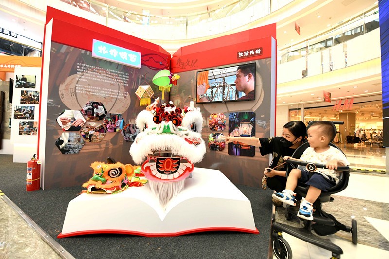 An exhibition for Hong Kong intangible cultural heritage is staged in a shopping mall in Shijiazhuang, north China's Hebei province, Sept. 13, 2021. (Photo by Chen Qibao/People's Daily Online)