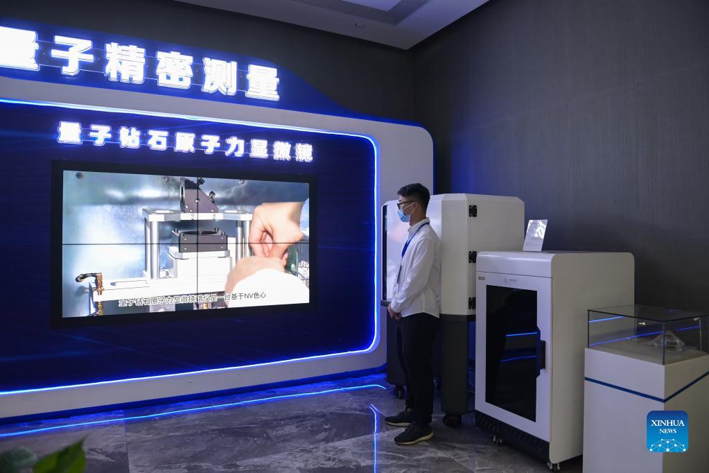Photo taken on Sept. 18, 2021 shows the booth of quantum diamond atomic force microscope (QDAFM) during the 2021 Quantum Industry Conference in Hefei, east China's Anhui Province. Themed "Quantum Technology · Industry Revolution", the 2021 Quantum Industry Conference was held in Hefei on Saturday. The conference brought together a group of scientific researchers and industry leaders to discuss the development of the quantum industry and released a series of applications. (Xinhua/Han Xu)
